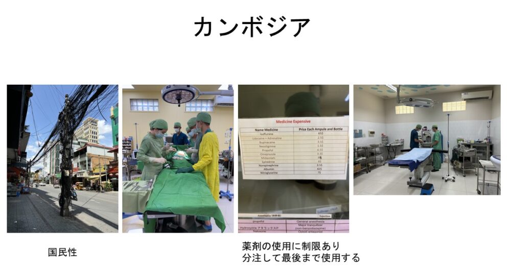 ■日本では標準的な治療であっても場所が変われば標準ではないことを気付かされた。昔の治療法であっても知っておくことは外国で働くうえでは有益になりうると思った。ミャンマーやカンボジアなどは当たり前が当たり前ではないところから、様々な可能性があると思われた。(救急医)